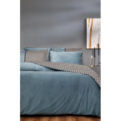 КПБ CIFT KISILIK SAVIO KADIFE SATEN NEVRESIM TAKIMI - INDIGO