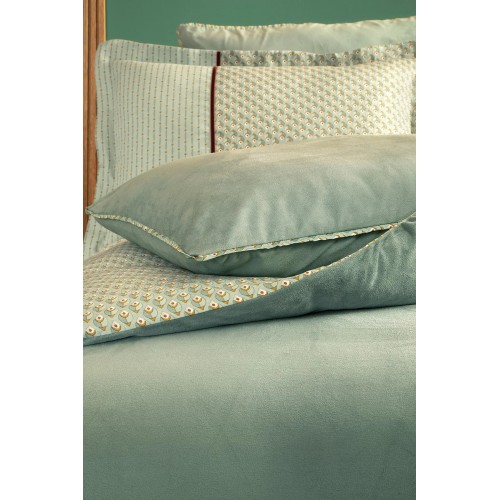 Комплект постельного белья Rowena, сочетающий в себе бархатные и атласные ткани с глубокими тонами цвета шалфея, создает стильную и впечатляющую атмосферу, сочетая в себе комфорт и эстетику благодаря богатым деталям дизайна и использованию 100% хлопкового атласа во внутренних частях пододеяльника.