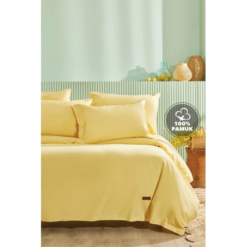 КПБ TEK KISILIK PLAIN RANFORCE YIKAMALI NEVRESIM TAKIMI - SARI